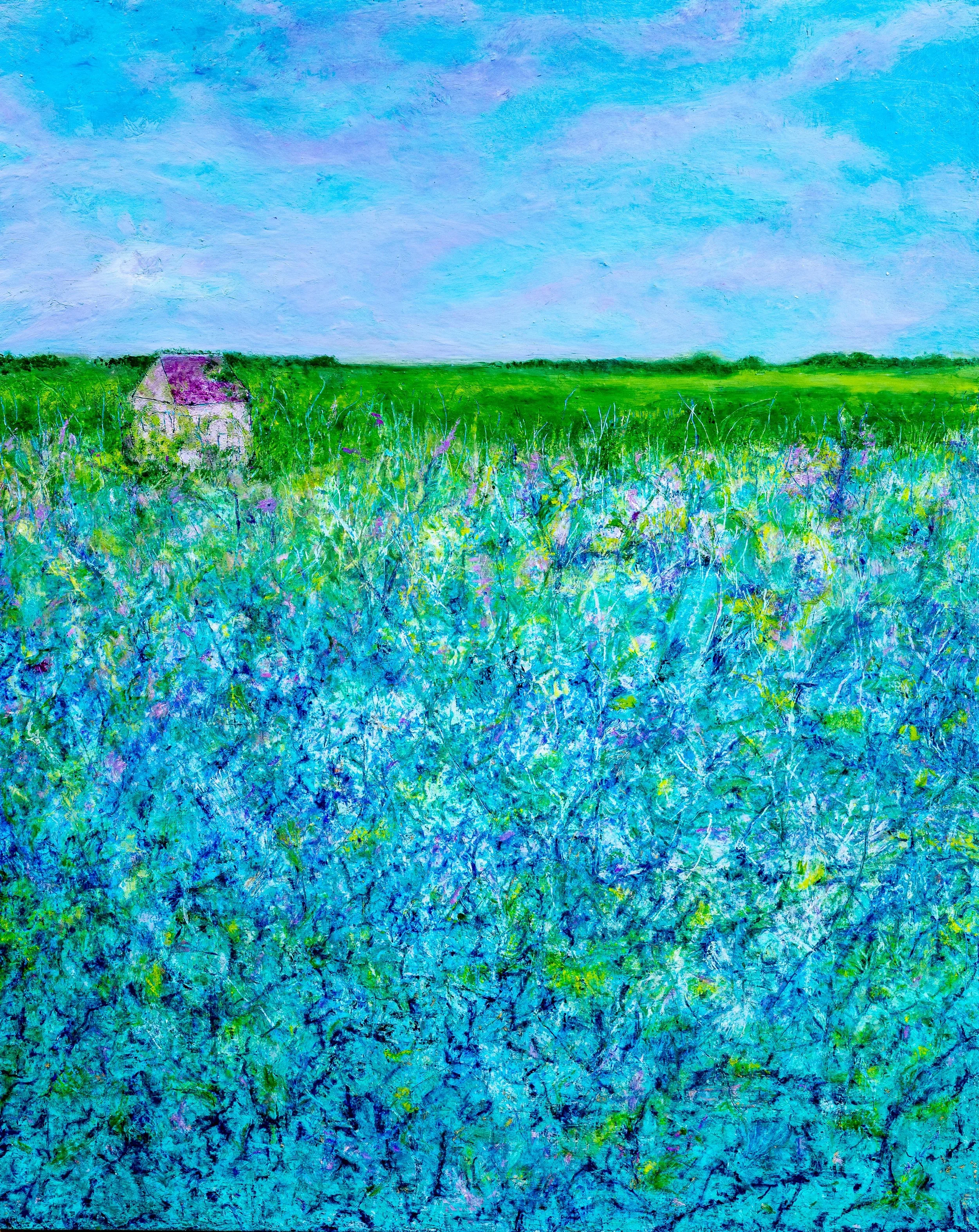 The Pink House in the Meadow - Oli & Cold Wax on Wood Panel 30x24 (2026)